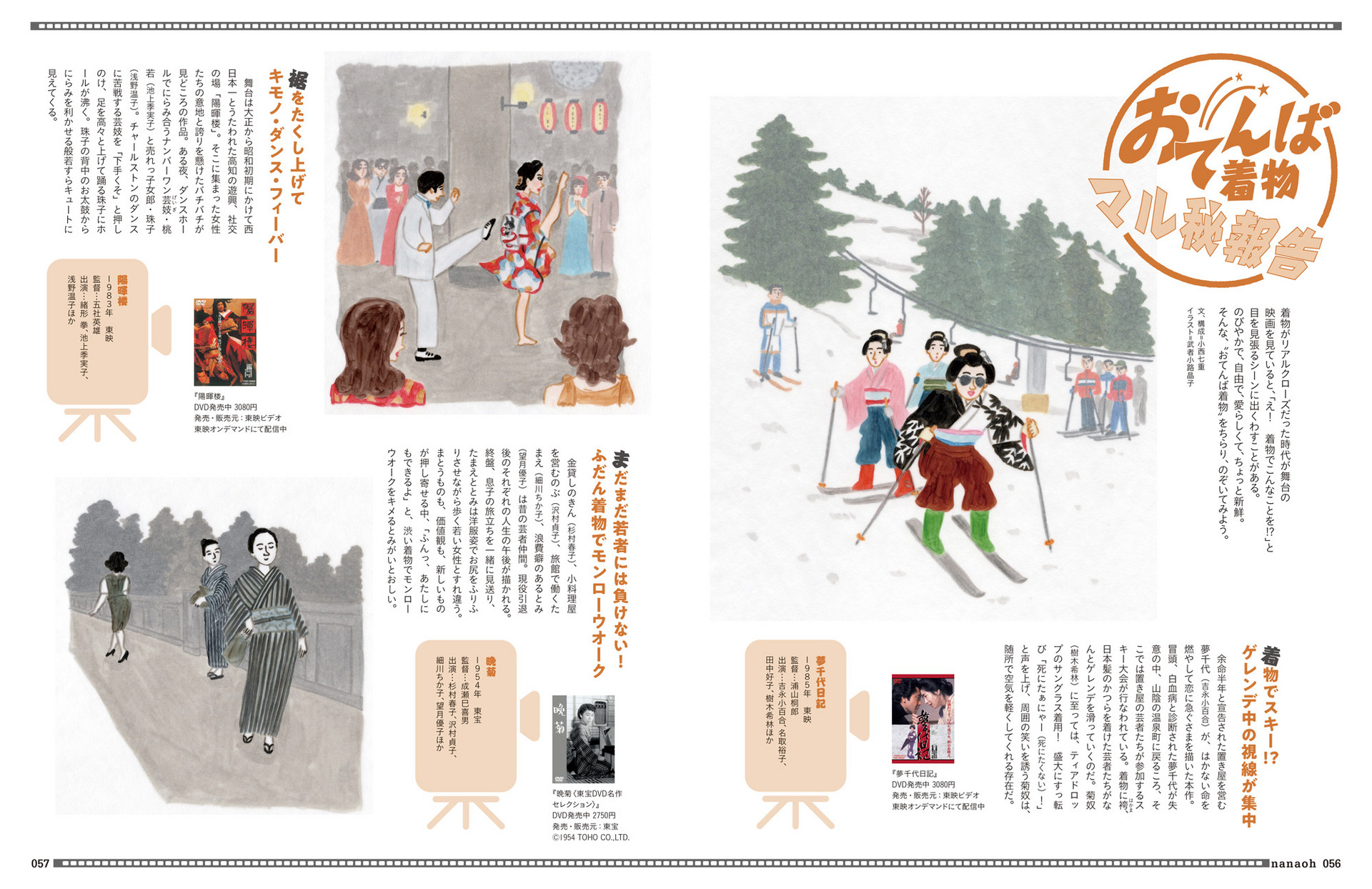 着物がリアルクローズだった時代が舞台の 映画を見ていると、「え! 着物でこんなことを⁉」と 目を見張るシーンに出くわすことがある。 のびやかで、自由で、愛らしくて、ちょっと新鮮。 そんな、“おてんば着物”をちらり、のぞいてみよう。