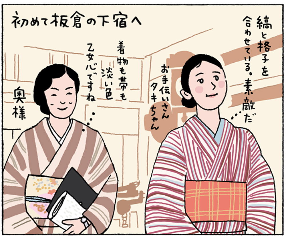 タキは家政婦の助言的な言葉でもって、板倉と会わないようにお願いをした。タキちゃんそうじゃないでしょ、と観る側には明白。だけど本人もそれを建前や嘘(うそ)だとは思っていないようなのだ。奥様はタキが無意識につくった虚構の中にいる。そういうものだとして考えなしに時間が流れて行く。私もまた、誰かの表向きの言葉が、事実として世間に容易(たやす)く定着してしまう中で暮らしている。来年はオリンピックだと信じて疑わなかった奥様たちの時代からと、あんまり変わってないんだなあと省みてしまった。