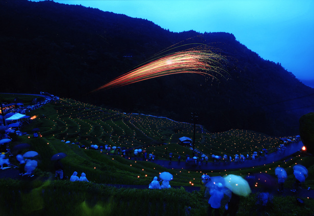 市民の寄贈や幼稚園児の手づくりによる 1000匹もの鯉のぼりが気持ちよさそうに舞う「初夏の風をうけて」からは、子供たちが健やかに育って欲しいという、世代を超えた思いが伝わってきます。幻想的に人の温もりと自然を描いた「伝統の山砲で虫送り」、素晴らしい朝日の感動を分かち合う「若者たち」も印象的な作品でした。 - 三井住友ファイナンス&リース株式会社