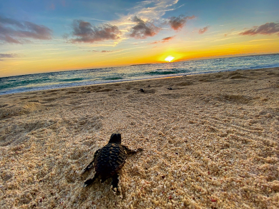 初めての海へ果敢に進むウミガメの子の一歩は、平和と未来への希望や、自然と人の共存の尊さ、海洋環境が全ての生命の源であることを思い起こさせます。当社事業を支えている海が小さな命のすみかである事実を象徴的に映し出し、生命の源たる海を未来へ守り継ぐ責任と行動を促す作品です。