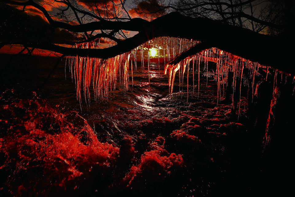 満開の大きな桜の木を、女の子が見上げています。土手の部分の緑色が、補色のピンク色の桜と女の子を際立たせ、お子さんの成長を見守る優しい温かなまなざしを感じます。佳作「寒波襲来」は、朝焼けが地球の情熱を、波打つ様は躍動感を感じさせます。また「目覚めるモリ」は、そびえ立つ針葉樹が神々しい雰囲気を醸し出しています。