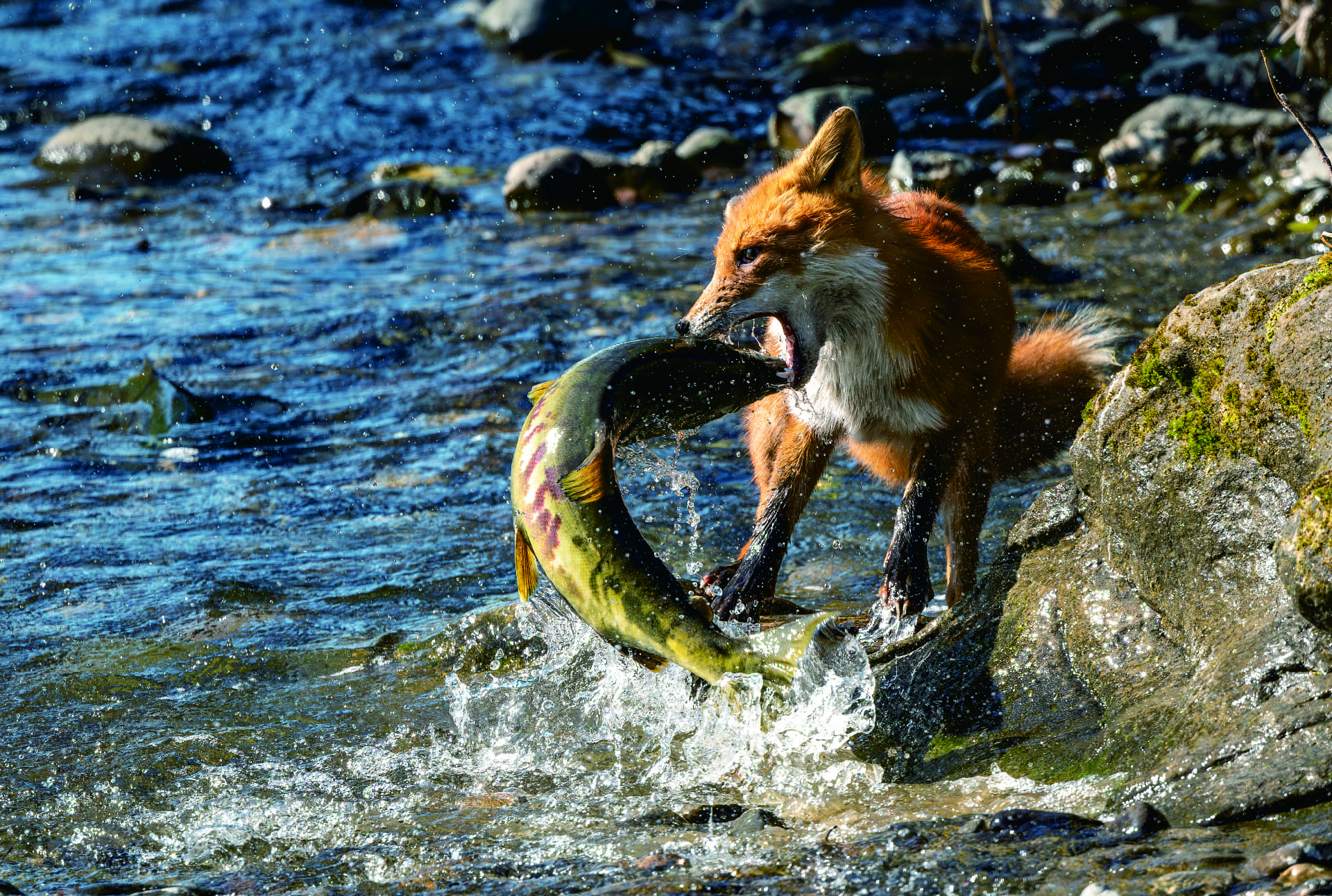 画面いっぱいに根付いた杉。生命の強さ、たくましさを感じさせます。一方で木々の間から光が差し込み、写真の雰囲気に柔らかさを与えていることもポイントです。佳作には、キツネとサケによる攻防戦から自然界で生きる厳しさが伝わる「格闘」、大雪の中で見かけたスズメたちの姿を捉えた「雪の日のふくら雀」が選ばれました。